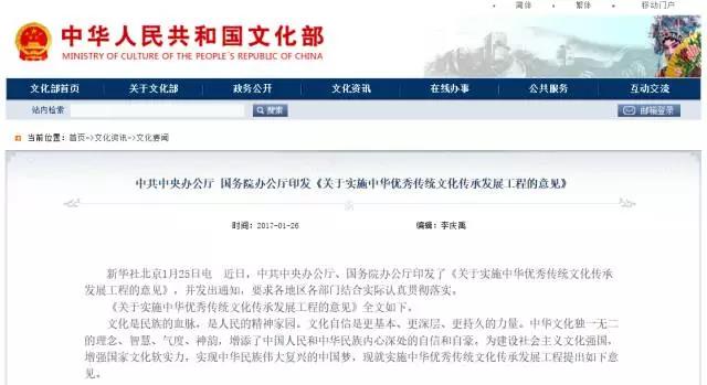 文化自信,是一個民族所有“自信”的前提和基礎(chǔ)。中共中央辦公廳、國務(wù)院辦公廳2月6日正式公布《關(guān)于實施中華優(yōu)秀傳統(tǒng)文化傳承發(fā)展工程的意見》,第一次以中央文件形式專題闡述中華優(yōu)秀傳統(tǒng)文化傳承發(fā)展工作。正如習(xí)近平總書記所強(qiáng)調(diào)的,“中華文化延續(xù)著我們國家和民族的精神血脈,既需要薪火相傳、代代守護(hù),也需要與時俱進(jìn)、推陳出新。”