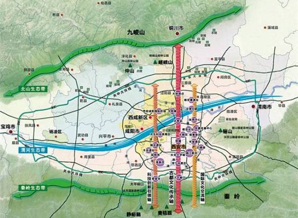 “三條軸線”大西安空間布局,圖片來(lái)源于網(wǎng)絡(luò)