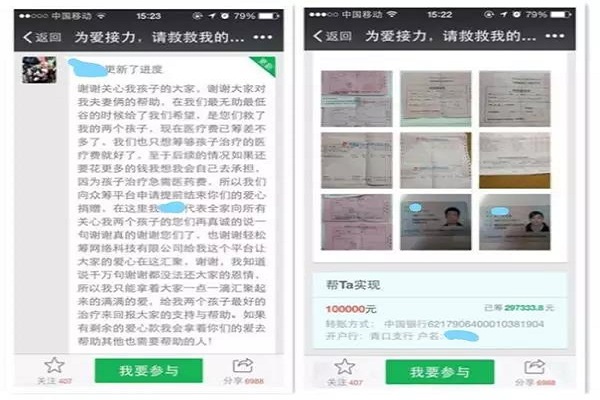 “輕松籌”和“愛心籌”是朋友圈比較活躍的捐款平臺(tái)。打開“輕松籌”主頁(yè),掃碼即可注冊(cè)登錄,填寫個(gè)人基本信息、籌款金額、籌款項(xiàng)目、籌款期限、醫(yī)院診斷證明照片和現(xiàn)有財(cái)產(chǎn)等信息即可發(fā)起項(xiàng)目,前后不超過20分鐘。“愛心籌”平臺(tái)設(shè)有“推薦病友發(fā)起獎(jiǎng)現(xiàn)金”的欄目,推薦人不用甄別即可自薦,還可以為別人(病人)發(fā)起籌款,籌款達(dá)到一定數(shù)額推薦人自己可得到現(xiàn)金獎(jiǎng)勵(lì)。當(dāng)下網(wǎng)絡(luò)籌款逐漸成為趨勢(shì),如果捐款平臺(tái)只圖用戶數(shù)量增加,忽視鑒別求助信息的真?zhèn)、放松參與者的誠(chéng)實(shí)甄別,實(shí)踐中,缺乏嚴(yán)格審核即發(fā)布愛心捐助信息是虛假籌款信息泛濫的原因之一。