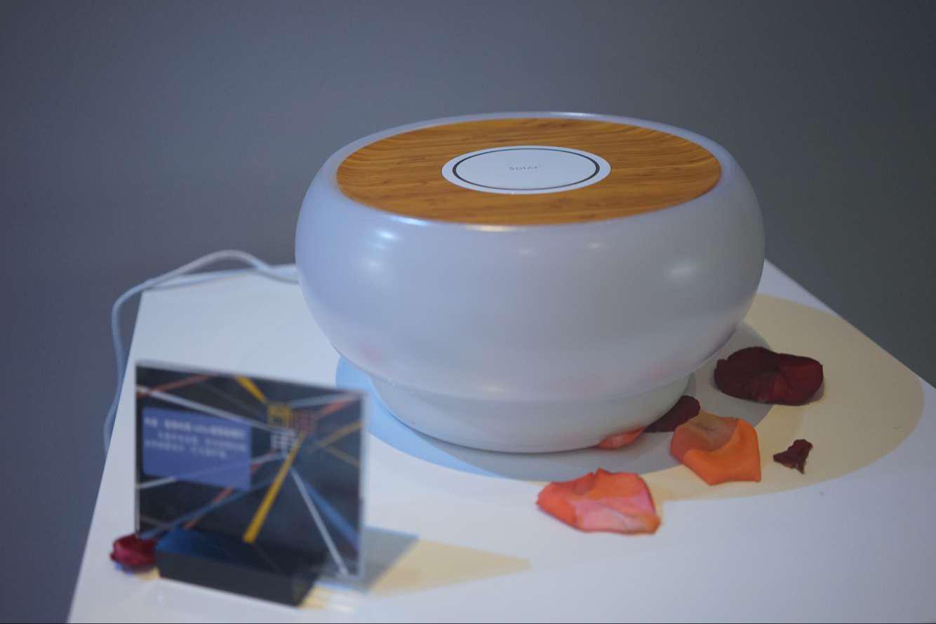 在頒獎儀式期間,創(chuàng)客作品展也同步舉行。在展區(qū),匙悟科技Solar情景助眠燈吸引了不少圍觀者。Solar 情景助眠燈主打用燈光來營造氛圍,用戶只需把手機放在燈上,助眠燈就會收到“休息”信號,燈則會緩緩熄滅,并開始為手機充電,同步收集臥室中的噪音和光線變化。次日清晨,它會模擬日出的光亮,用輕柔的音樂和暖陽般的燈光將用戶喚醒。
