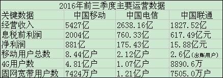三大運(yùn)營商前三季度財(cái)報(bào)一覽:4G用戶移動(dòng)獨(dú)占70%以上