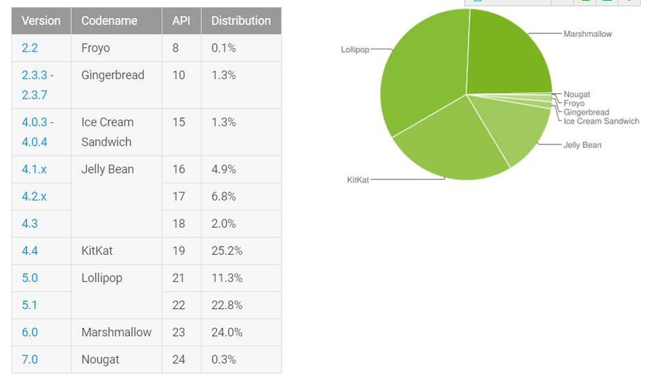 Android 7.0發(fā)布已兩個(gè)月 市場(chǎng)份額僅0.3%