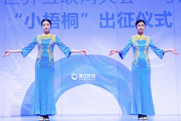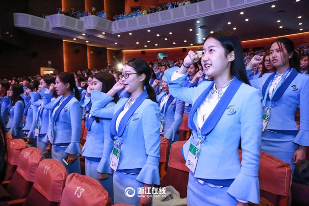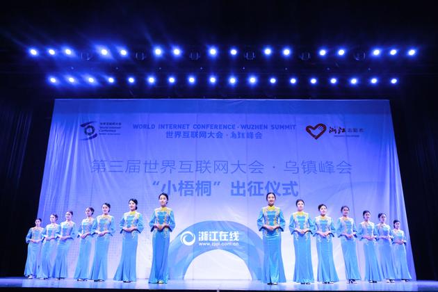 11月12日上午,浙江桐鄉(xiāng),第三屆世界互聯(lián)網(wǎng)大會烏鎮(zhèn)峰會志愿者出征儀式,“小梧桐”志愿者身著新裝閃亮登場。
