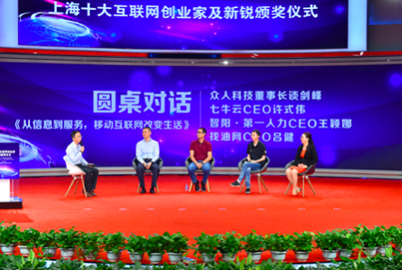 圓桌對話環(huán)節(jié),人民網(wǎng)上海分公司總經(jīng)理金煜純攜手眾人科技董事長談劍峰、七牛云CEO許式偉、智陽.第一人力CEO王穎娜、找油網(wǎng)CEO呂健等嘉賓就“從信息到服務(wù),移動(dòng)互聯(lián)網(wǎng)改變生活”主題進(jìn)行了探討。