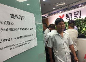 今年4月易到出現(xiàn)提現(xiàn)困難的情況后,易到承諾,愿意選擇線下提現(xiàn)的司機(jī)在公司登記后,16個(gè)自然日后賬戶金額將直接打到司機(jī)的銀行卡上,但很多司機(jī)到期后并未收到款項(xiàng),所以只能選擇到公司要賬。