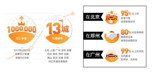 近日,滴滴出行通過其官方微信號(hào)公布了滴滴優(yōu)享日單量突破100萬的成績(jī)單,拿下網(wǎng)約車中端市場(chǎng)。2月末上線至今,優(yōu)享已在北、上、廣、深、杭、南京等13個(gè)城市提供服務(wù)。其中,在北京95%以上的優(yōu)享行程獲乘客好評(píng),在鄭州80%的乘客愿意向親友推薦優(yōu)享服務(wù)。