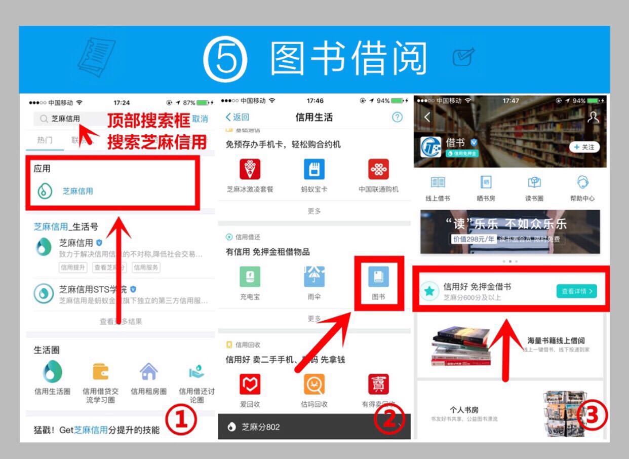 步驟:支付寶-芝麻信用-信用生活-圖書借閱