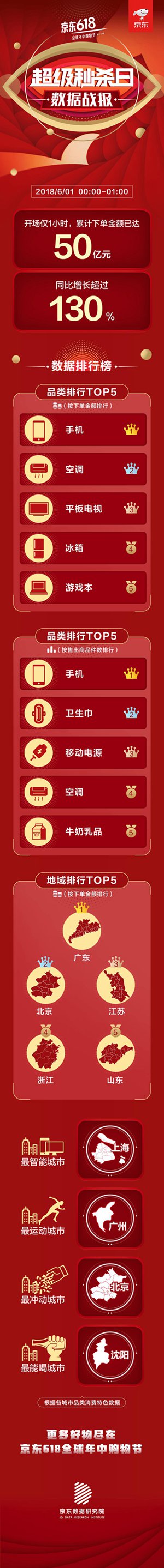 6月1日,京東618全球年中購(gòu)物節(jié)正式開啟,并迎來“超級(jí)秒殺日”。京東大數(shù)據(jù)顯示,開場(chǎng)1小時(shí),累計(jì)下單金額已達(dá)50億,同比增長(zhǎng)超過130%。