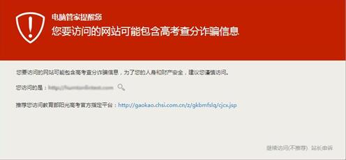 (騰訊電腦管家高考查分詐騙網(wǎng)站攔截提示頁面)
