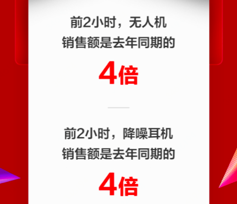 各種新奇特的商品也受到消費(fèi)者熱捧。1日到10日游戲手機(jī)銷(xiāo)量是10月同期的2倍,海底撈自熱火鍋銷(xiāo)售額增長(zhǎng)了500%,智力快車(chē)早教兒童機(jī)器人增長(zhǎng)200%。