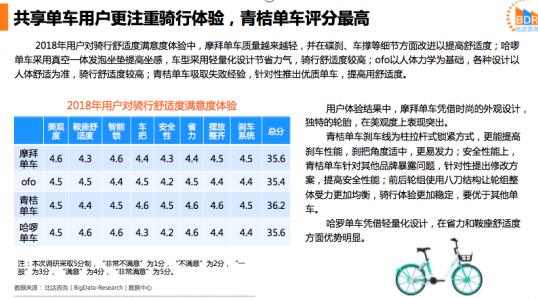 報(bào)告插圖:共享單車(chē)用戶更注重騎行體驗(yàn),青桔單車(chē)評(píng)分最高