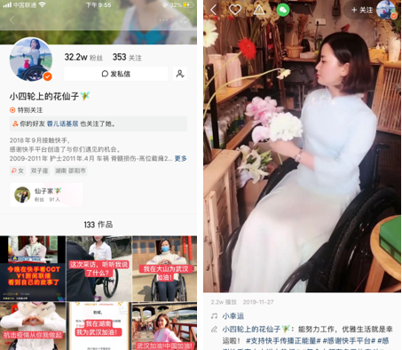2月4日,快手用戶、湖南邵陽城步縣90后苗族姑娘楊淑亭出現(xiàn)在央視《新聞聯(lián)播》的大屏幕上。這是《新聞聯(lián)播》新年期間推出的《新春走基層脫貧攻堅一線見聞》特別節(jié)目,整個節(jié)目用4分多鐘的時間,報道了中國殘聯(lián)第七次全國代表大會代表楊淑亭的輪椅創(chuàng)業(yè)路和“扶貧車間”。