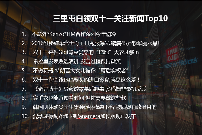 。▏Q(mào)白領(lǐng)雙十一關(guān)注新聞前十名)