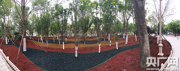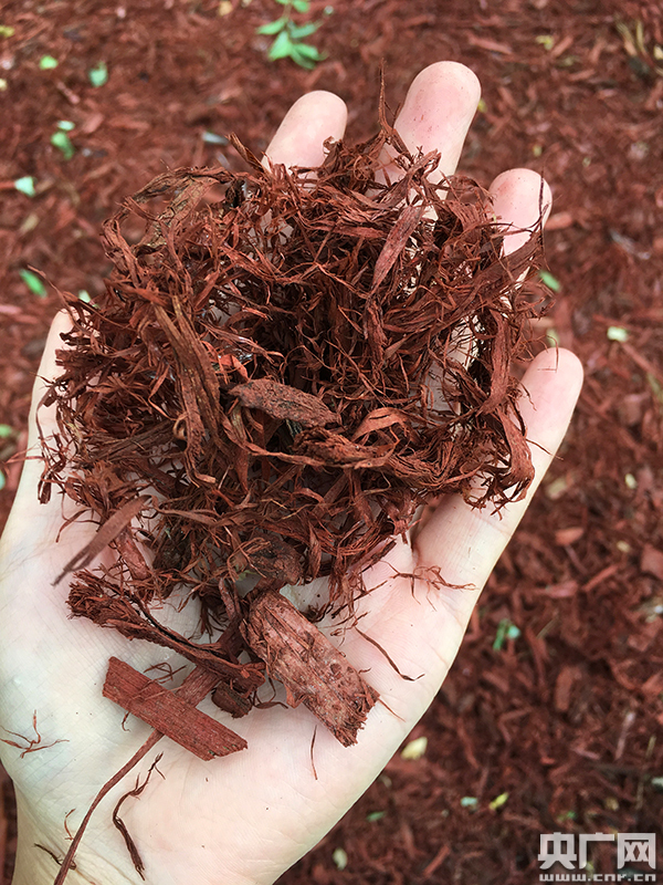 水上公園綠化隊副隊長王巍煒介紹說,“有機覆蓋物”技術(shù)源自美國,是一種新型節(jié)能環(huán)保材料。主要原料是天然植物的綠化廢棄物如樹皮等經(jīng)過發(fā)酵形成。它不僅可以通過覆蓋裸土減少塵源,其粗糙表面還能吸附空氣中的塵埃顆粒,大大改善局部環(huán)境的空氣質(zhì)量,從而緩解城市霧霾現(xiàn)象!斑^去一年里,我們在部分樹穴下鋪設這種有機覆蓋物,通過使用和觀測,我們發(fā)現(xiàn),首先景觀性比較好,主打顏色是紅色,在綠意盎然的公園景觀中起到提亮作用,讓游客視覺上達到平衡。其次,這種材料在雨水浸泡下,不會四處亂溢,沉浮性比較好,損耗量也不會大;由于材料間具有黏連性,大風天氣中也不會被吹的四處亂跑。”王巍煒說。