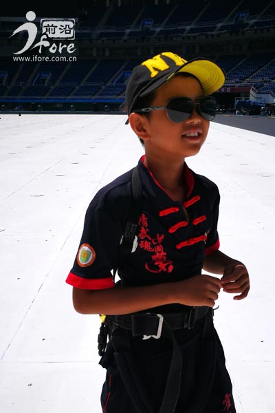 今年5月,全運會導(dǎo)演組到學(xué)校挑選“津娃”,聰明、可愛、自信、不怯場的潘天順吸引了導(dǎo)演的目光,他們認(rèn)定這個陽光開朗的男孩可以撐得起“津娃”的形象。“真的嗎?真的是我一個人表演嗎?”潘天順有點不敢相信,他太高興了,一遍遍地跟老師確認(rèn)。喜悅的心情無以言表,當(dāng)時他完全沒有想到要經(jīng)歷一段魔鬼般的訓(xùn)練。
