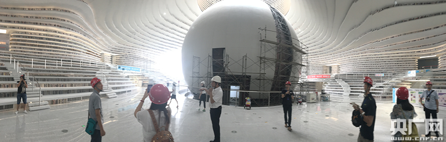 走入濱海文化中心正門,可以看到的是有“濱海之眼”之稱的濱海圖書館,圖書館最大的特點(diǎn)是其內(nèi)部的球形多功能廳。這個球形多功能廳外部建成了一個穹幕影院,40萬個LED燈珠將鑲嵌在全穿孔鋁板上,大球的外部可以播放電影。大球內(nèi)部則是濱海圖書館的報(bào)告廳,廳內(nèi)可容納將近100人,并采用可伸縮座椅設(shè)計(jì)。目前,該圖書館已經(jīng)運(yùn)進(jìn)入18萬冊圖書,而后續(xù)藏書量可達(dá)130萬冊。