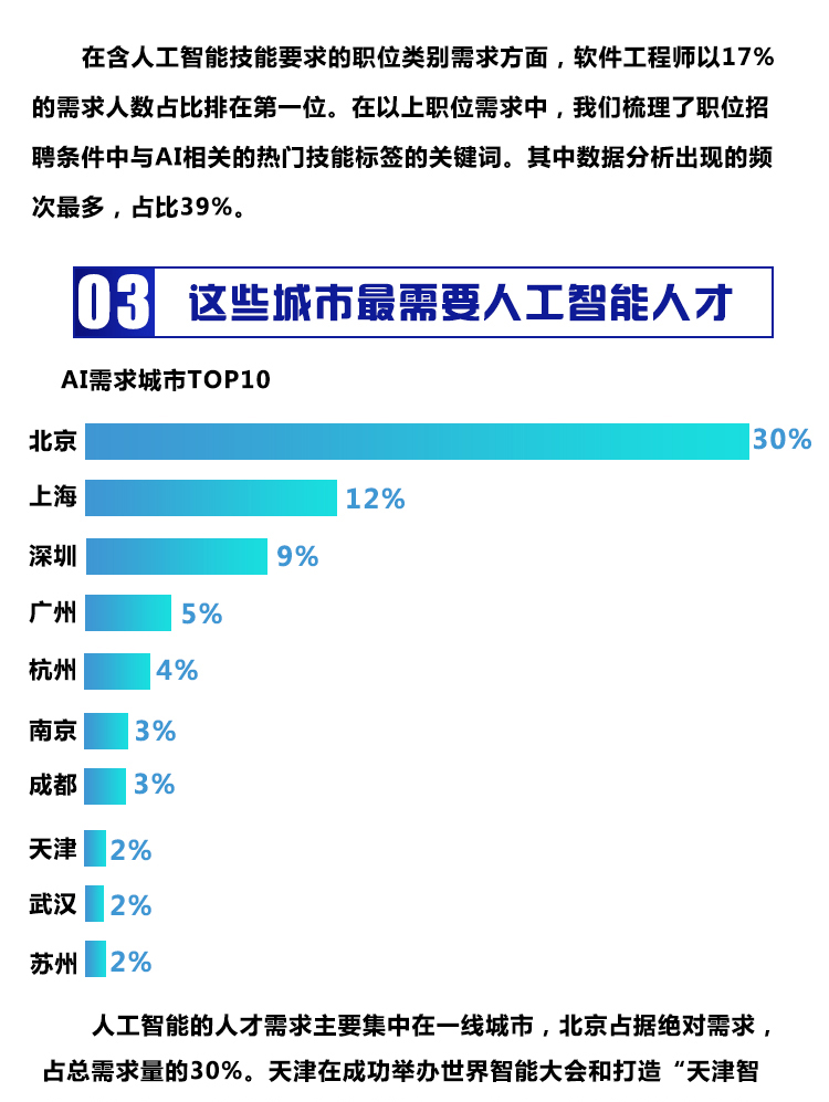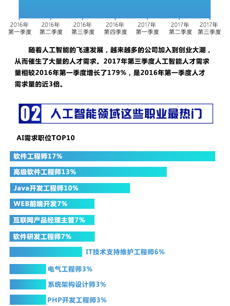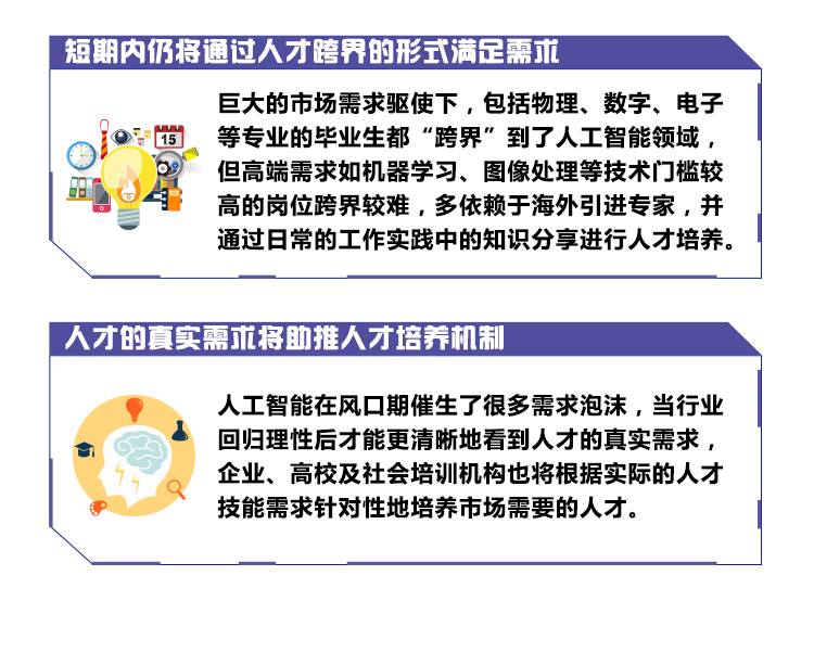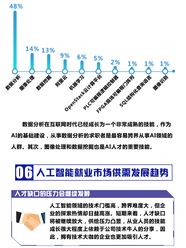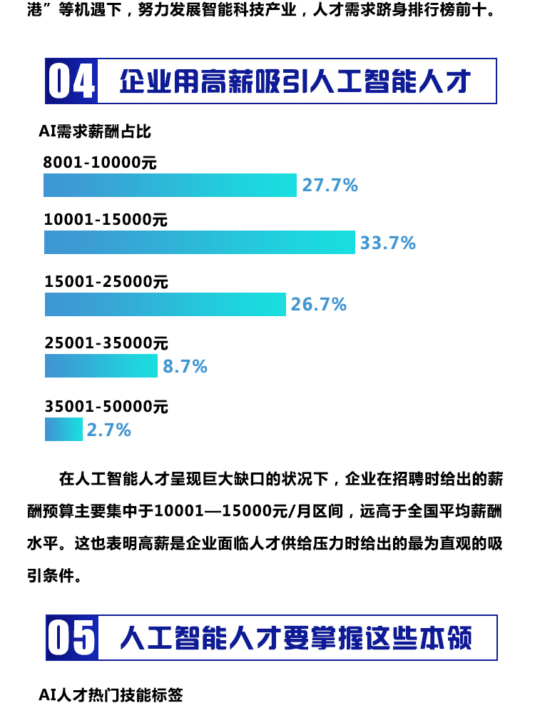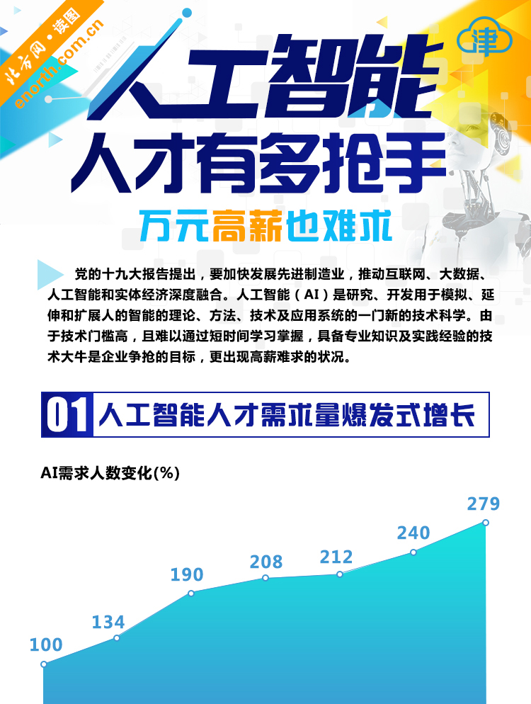 內(nèi)容提要:黨的十九大報告提出,要加快發(fā)展先進(jìn)制造業(yè),推動互聯(lián)網(wǎng)、大數(shù)據(jù)、人工智能和實體經(jīng)濟(jì)深度融合。人工智能(AI)是研究、開發(fā)用于模擬、延伸和擴(kuò)展人的智能的理論、方法、技術(shù)及應(yīng)用系統(tǒng)的一門新的技術(shù)科學(xué)。由于技術(shù)門檻高,且難以通過短時間學(xué)習(xí)掌握,具備專業(yè)知識及實踐經(jīng)驗的技術(shù)大牛是企業(yè)爭搶的目標(biāo),更出現(xiàn)高薪難求的狀況。(北方網(wǎng)編輯張瑜 王舒瑤)