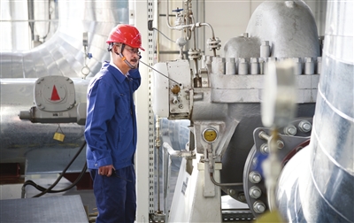 東北郊供熱管網(wǎng)一級中繼泵站工作人員每天都要傾聽供熱水泵中的軸承是否有雜音,以確保供熱水壓正常。 本報(bào)記者 張磊 攝