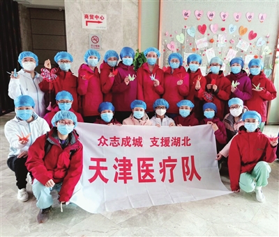 回到駐地,牛遠(yuǎn)杰趕緊召開(kāi)臨時(shí)黨委擴(kuò)大會(huì),將18個(gè)支部書(shū)記及醫(yī)療專家組、護(hù)理組、感控組、后勤保障組、宣傳組等負(fù)責(zé)人叫到一起,研究進(jìn)艙步驟。天津五隊(duì)有303名隊(duì)員,其中,100名醫(yī)生、200名護(hù)士,是天津派出的人數(shù)最多的支援湖北醫(yī)療隊(duì),隊(duì)員來(lái)自全市52家醫(yī)療機(jī)構(gòu),再加上天津國(guó)家緊急醫(yī)學(xué)救援隊(duì),臨時(shí)黨委統(tǒng)轄350多人。黨委會(huì)決定:首先派資深專家和護(hù)士,共產(chǎn)黨員先上。牛遠(yuǎn)杰擲地有聲:“這時(shí)候,黨支部的戰(zhàn)斗堡壘作用、黨員的先鋒模范作用,要充分發(fā)揮。這是戰(zhàn)場(chǎng),我們都是戰(zhàn)士,咱天津醫(yī)療隊(duì)決不能掉鏈子!”