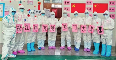 休艙當(dāng)天,江岸方艙醫(yī)院臨時(shí)黨委書(shū)記、武漢市江岸區(qū)區(qū)長(zhǎng)祁琳對(duì)記者說(shuō),如果讓他擬一份頒獎(jiǎng)詞,他一定會(huì)寫(xiě)上:“天使逆行,以零為峰。津字招牌,名不虛傳!”