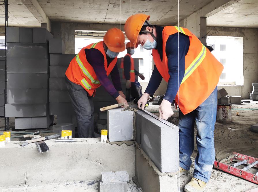 砌筑工班組在砌筑墻體(央廣網(wǎng)發(fā) 中建三局供圖)