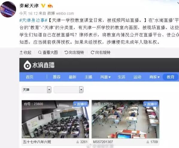 記者在直播平臺看到,盡管是網(wǎng)友今天才曝光到微博上,但該直播的留言最早可以追溯到去年9月份。教室里的實(shí)時監(jiān)控錄像怎么會流傳到直播平臺上?是學(xué)校官方行為還是個人行為?而這種直播,是否經(jīng)過學(xué)校、學(xué)生以及學(xué)生家長的授權(quán)許可?