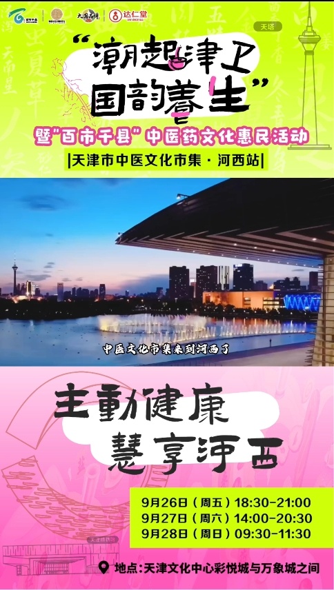9月26日至28日,“潮起津衛(wèi) 國(guó)韻養(yǎng)生”天津市中醫(yī)文化市集河西站將隆重舉行。