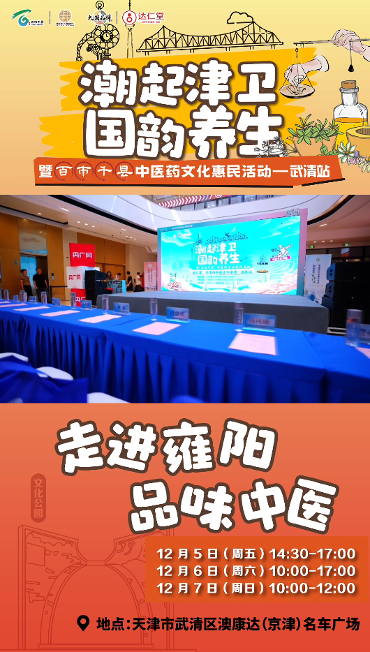 12月5日至7日,“潮起津衛(wèi) 國韻養(yǎng)生”天津市中醫(yī)文化市集武清站,將在天津市武清區(qū)澳康達(京津)名車廣場正式啟幕。