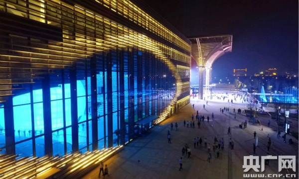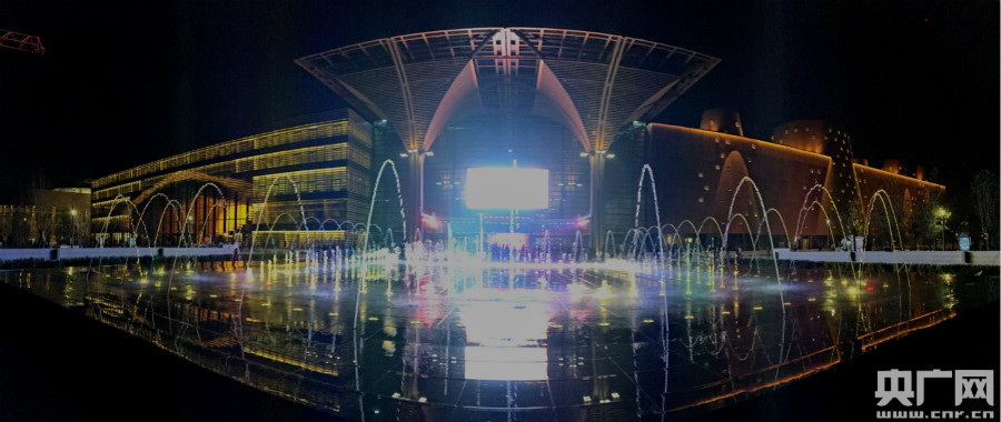 央廣網(wǎng)天津9月30日消息(記者 劉陽(yáng))天津?yàn)I海新區(qū)文化中心進(jìn)入最后收尾,9月30日晚20點(diǎn)18分,文化中心開(kāi)幕前整體燈光點(diǎn)亮,天津?yàn)I海中心圖書(shū)館、演藝中心、連廊、探索館瞬間點(diǎn)亮,前廣場(chǎng)噴泉也隨著音樂(lè)開(kāi)始變換舞動(dòng),時(shí)而單柱擎天時(shí)而波浪連綿,F(xiàn)場(chǎng)有來(lái)自入駐商戶、工程代表、監(jiān)理公司、物業(yè)公司等共計(jì)600人共同見(jiàn)證濱海新區(qū)點(diǎn)亮新未來(lái)。圖為天津?yàn)I海新區(qū)文化中心全景(劉陽(yáng)/攝) -