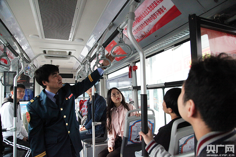 “選配和布置的標(biāo)語(yǔ)都是十九大精神的核心,乘客在乘車(chē)時(shí)可以很自然地看到標(biāo)語(yǔ),感受到十九大精神所在,對(duì)我而言在行車(chē)中,能夠時(shí)時(shí)刻刻提醒自己學(xué)習(xí)好,利用好這塊‘流動(dòng)’宣傳陣地,把十九大精神帶給更多的人!倍〉摲逭f(shuō)。
