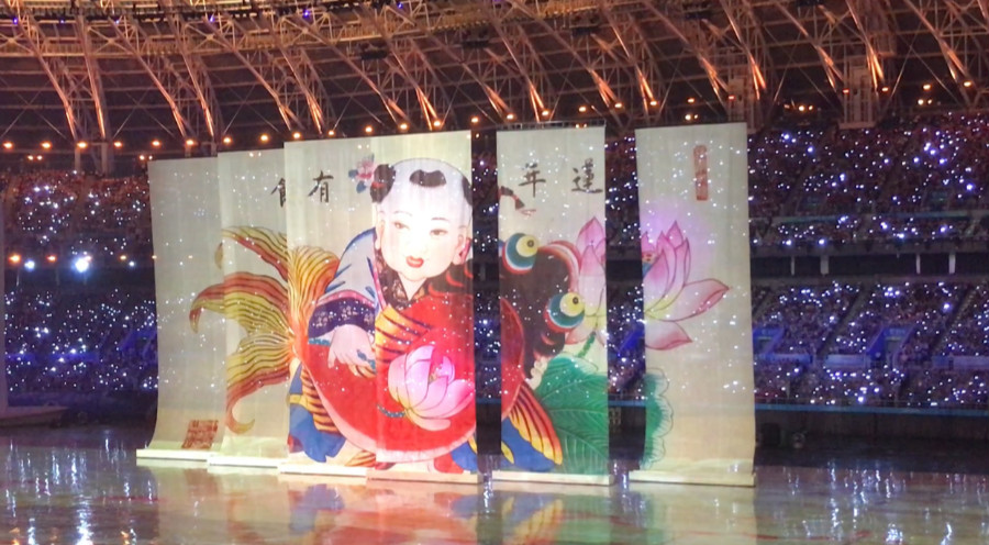 文體展演臨近結(jié)束時,主題歌《健康贏未來》激情唱響,觀眾席上出現(xiàn)“喜迎十九大,共赴新征程”的標(biāo)語,中國紅的大紅燈籠隨著音樂的優(yōu)美旋律震撼升起,全場歡騰。此外,在節(jié)目呈現(xiàn)上努力創(chuàng)新,在大型體育賽事開幕式上實(shí)現(xiàn)了視頻3D技術(shù)和節(jié)目內(nèi)容的完美融合。