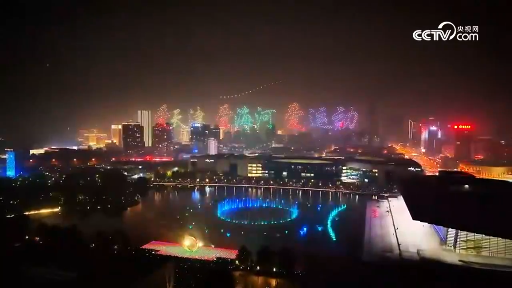 千架無人機(jī)點(diǎn)亮津城夜空 科技光影獻(xiàn)禮天津馬拉松