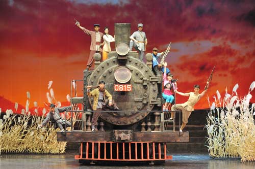 中廣網(wǎng)北京5月18日消息(記者 呂煒)總政歌舞團(tuán)的大型紅色經(jīng)典舞劇《鐵道游擊隊(duì)》將于5月19日至21日在國家大劇院再次上演,這是全軍系統(tǒng)慶祝建黨90周年的重要演出,也被納入國家大劇院獻(xiàn)禮黨的90華誕百場系列演出。舞臺(tái)文學(xué)劇本的創(chuàng)作者趙大鳴、作曲趙麟、總編導(dǎo)楊笑陽,將向觀眾解讀這部在視覺呈現(xiàn)和精神內(nèi)涵雙方面具有高水平的力作。紅色舞劇《鐵道游擊隊(duì)》首演之地是國家大劇院。一經(jīng)推出,以其濃郁的山東地域風(fēng)情、豪邁的抗日軍民風(fēng)采、壯麗凝重的歷史畫卷,給觀眾帶來全新的藝術(shù)享受。特別是當(dāng)年曾親身參加“鐵道游擊隊(duì)”戰(zhàn)斗的老同志的建議,對(duì)全劇的劇情、人物、舞蹈編排、音樂創(chuàng)作、服裝和舞美設(shè)計(jì)等多個(gè)關(guān)鍵環(huán)節(jié)進(jìn)行了潛心的修改和精心的打磨,力求達(dá)到更高的藝術(shù)水準(zhǔn)。