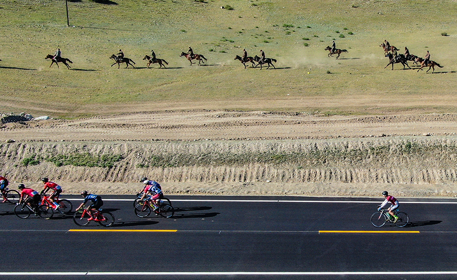新疆第十三屆環(huán)賽里木湖公路自行車賽第四賽段(于蘇甫·艾尼 攝)
