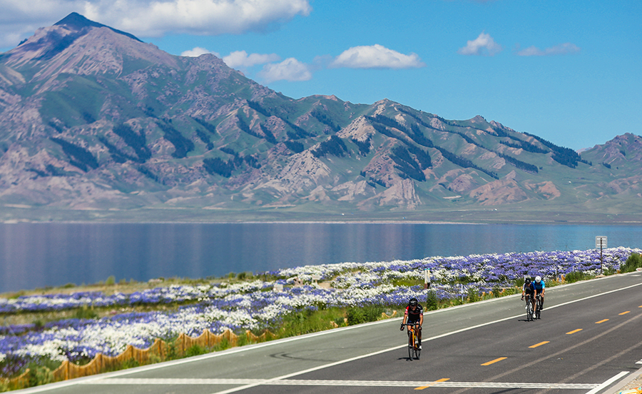 新疆第十三屆環(huán)賽里木湖公路自行車賽明日將迎來最后一個賽段(于蘇甫·艾尼 攝)