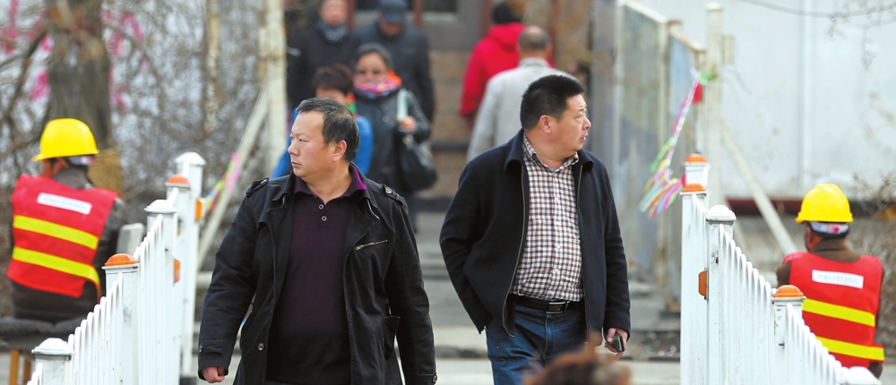 4月7日9時42分,在西北路,兩位行人四處張望,尋找出行捷徑。