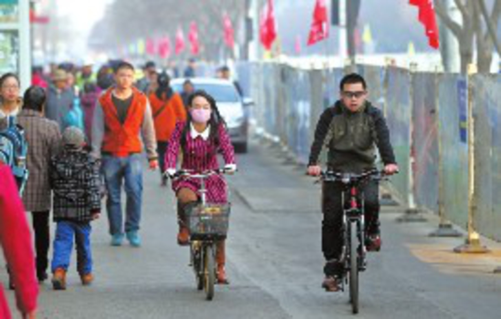7日9時03分,在阿勒泰路,由于道路圍蔽施工,有市民選擇騎自行車出行。