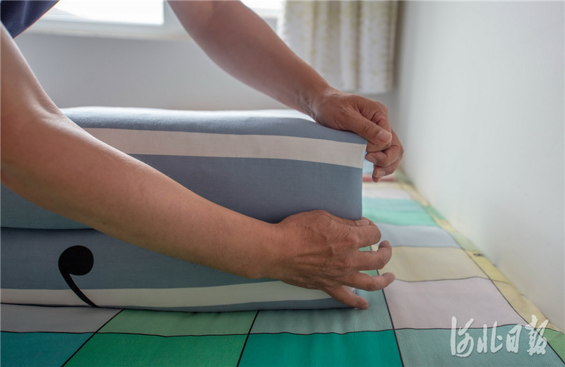 2020年7月10日,駐村工作隊隊員正在整理內(nèi)務,四位退伍老兵至今還保持著軍人本色。河北日報記者 趙杰 攝