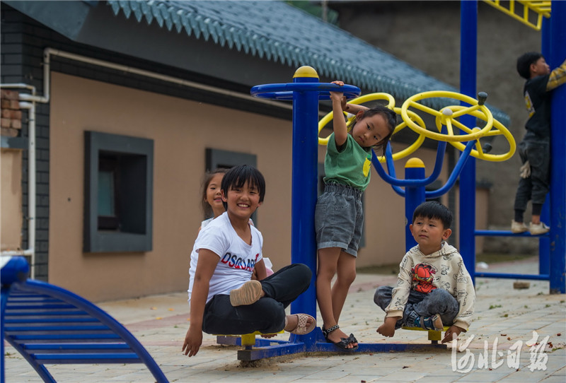 2020年7月10日,孩子們村中街邊的健身器材上玩耍。河北日報記者 趙杰 攝