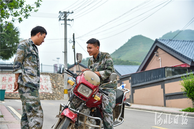 2020年7月10日,村民張志勇(右)騎在摩托車上跟村民聊天。河北日報記者 趙杰 攝