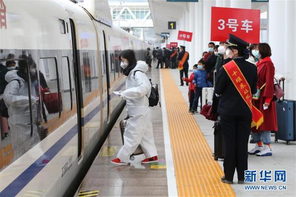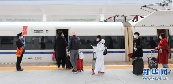 當(dāng)日,湖北省十堰市193名進(jìn)京務(wù)工人員乘坐G4834次復(fù)工專列從十堰東高鐵站出發(fā)。他們和從湖北省襄陽市登上本次專列的一批復(fù)工人員抵達(dá)北京西站后,用人單位將用專車接回并隔離觀察14天后方可上崗務(wù)工。