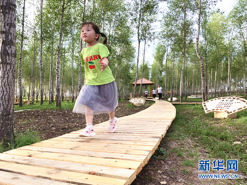 老百姓在扎賚特旗國家現(xiàn)代農(nóng)業(yè)產(chǎn)業(yè)園內(nèi)的公園觀光嬉戲。記者王靖 攝