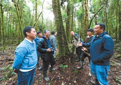 技術(shù)專家在朗杰崗村林地觀察仿野生鐵皮石斛生長情況。記者白娟 格桑吉美 攝