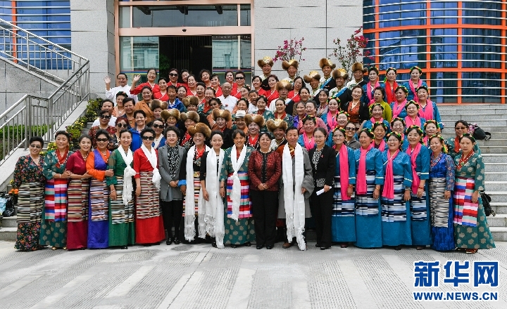 8月31日,拉薩市宗角祿康廣場阿佳婦聯(lián)代表與西藏自治區(qū)婦聯(lián)、拉薩市婦聯(lián)領(lǐng)導(dǎo)合影。