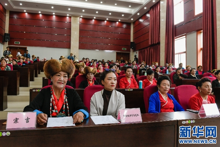 8月31日,拉薩市宗角祿康廣場阿佳婦聯(lián)代表們在參加成立大會。