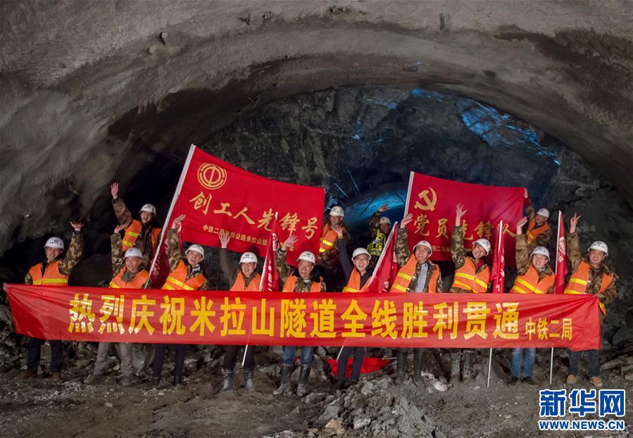 7月30日,拉林高等級公路米拉山隧道建設(shè)者在慶祝隧道貫通。新華社發(fā)(旦增尼瑪曲珠 攝)
