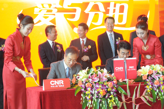 2011年9月28日,“心系人民 ,愛與分擔(dān)”中央人民廣播電臺(tái)走進(jìn)中國人保財(cái)險(xiǎn)暨戰(zhàn)略合作簽約儀式在北京舉行,中央人民廣播電臺(tái)王曉暉副臺(tái)長、中國人保財(cái)險(xiǎn)總裁王銀成等雙方相關(guān)領(lǐng)導(dǎo)出席此次簽約儀式。中央人民廣播電臺(tái)廣告經(jīng)營中心主任周偉和中國人民財(cái)產(chǎn)保險(xiǎn)股份有限公司辦公室主任謝冰代表雙方簽署協(xié)議。