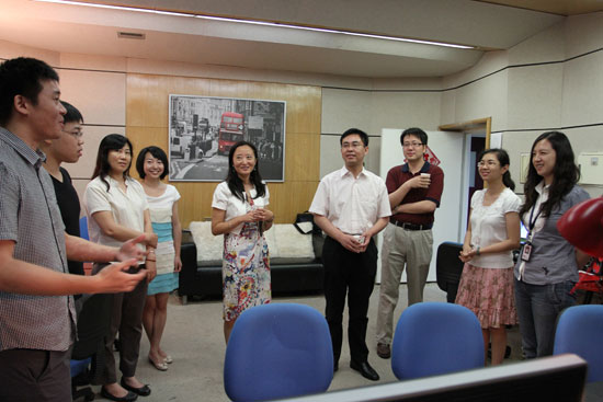 2012年6月8日,中央臺機關黨委副書記劉智力、團委書記王非在央廣傳媒發(fā)展總公司廣告分公司黨支部書記、常務副總經(jīng)理周軍的陪同下,深入央廣廣告分公司,看望了正在緊張備戰(zhàn)2013年廣告預售工作的央廣廣告一線員工,并代表中央臺機關黨委、團委,將“青年文明號”獎牌、“青年崗位能手”證書頒發(fā)到一線員工手中。