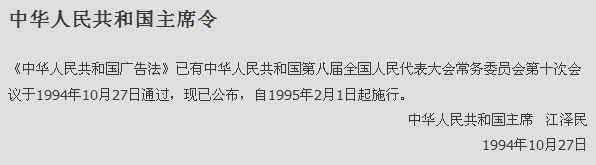第四十九條 本法自1995年2月1日起施行。本法施行前制定的其他有關廣告的法律、法規(guī)的內容與本法不符的,以本法為準。