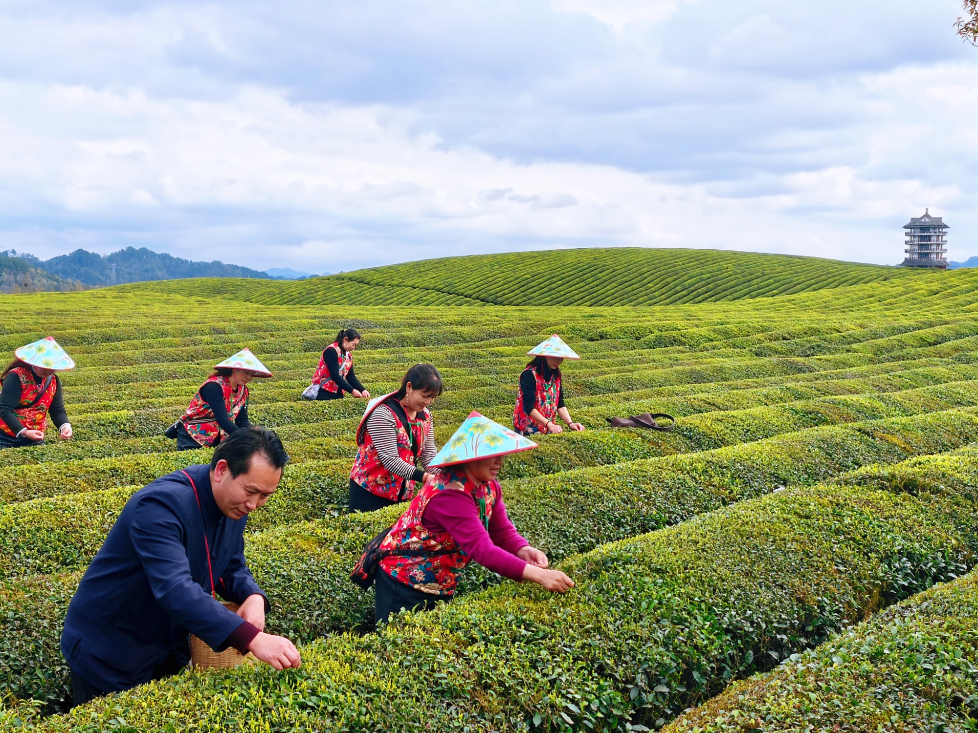 貴州松桃普覺鎮(zhèn):春茶采摘忙 綠葉子變“金葉子”